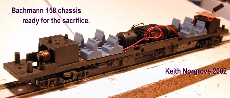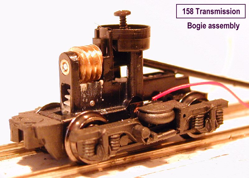 Various attempts at providing P4 power for DMUs had not been very successful, I tried NWSL PDT bogies, it took two of these to get a 3 car set up my hills, they were noisy and I never got the running quality to my satisfaction. A High Level lowrider ran OK in a single unit but slowly and having to run flat out put the noise up. While I was considering having a go at a 'Scannel' DMU drive I came across a cheap offer on a Bachmann 158 and decided to investigate if the drive from this could be fitted in a DMU.