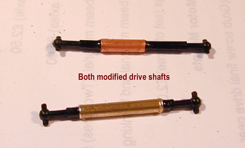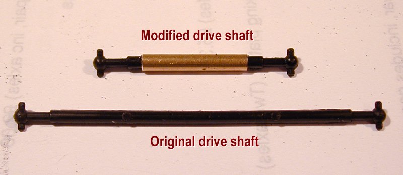 All that's left now is to fit the motor to the centre of the chassis and shorten the drive shafts to fit, these are just cut and the ends glued into a piece of brass tube.