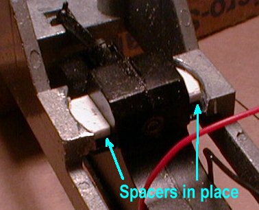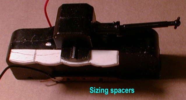 To fit the spacers, the retaining ledges were removed by a combination of grinding with the Dremel and filing. If care is taken to leave the strengthening ribs in place they will act as retainers at the new height without additional work. Re-assembly with the spacers in place completes this stage of the job. My Warship is now running happily around with the correct buffer height.