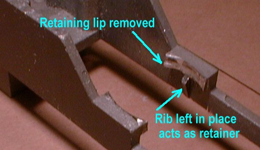 Chassis showing effect of removing retaining ledges, rib remains as retainer. | |