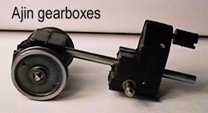 These pics show the two types of gearbox with a P4 wheelset, the wheels are on the original axle and the axle end is not long enough for outside bearings so longer axles need to be substituted. | |