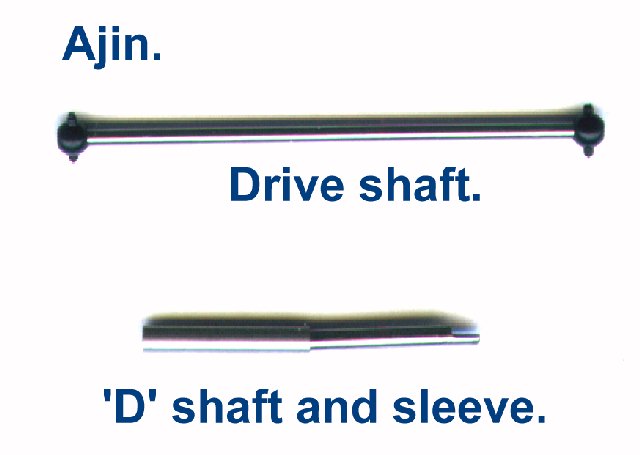 Here one of the motor - reduction gear drive shafts and a 'D' shaft from the end gearbox with its sleeve. |