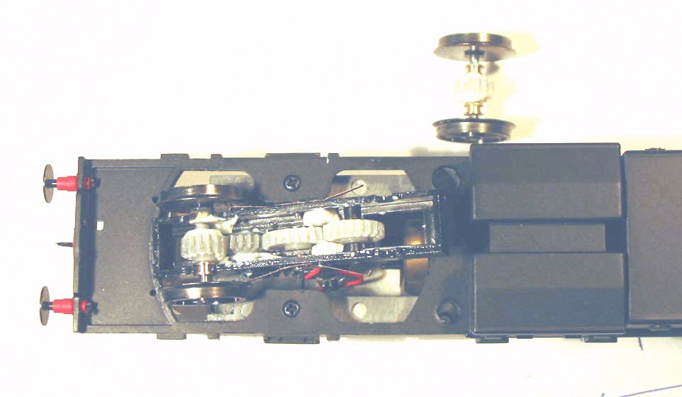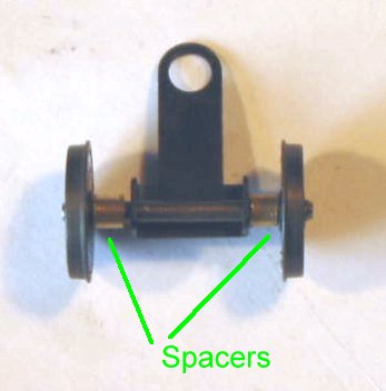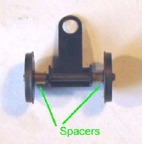 length but should not be knurled. For the pony truck a 3ft diameter disc wheelset is required, eg Alan Gibson part G4S09. The axle should be reduced to 22mm as above and the wheelset assembled to the pony truck with two 3mm spacers made of the same 3mm brass tube. This done everything can be put back together.
