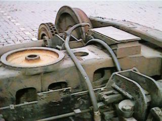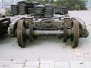 DLR purchased second hand freightliner wagons for conversion into Engineer's wagons. These photos show one of the spare bogies in the Beckton depot.