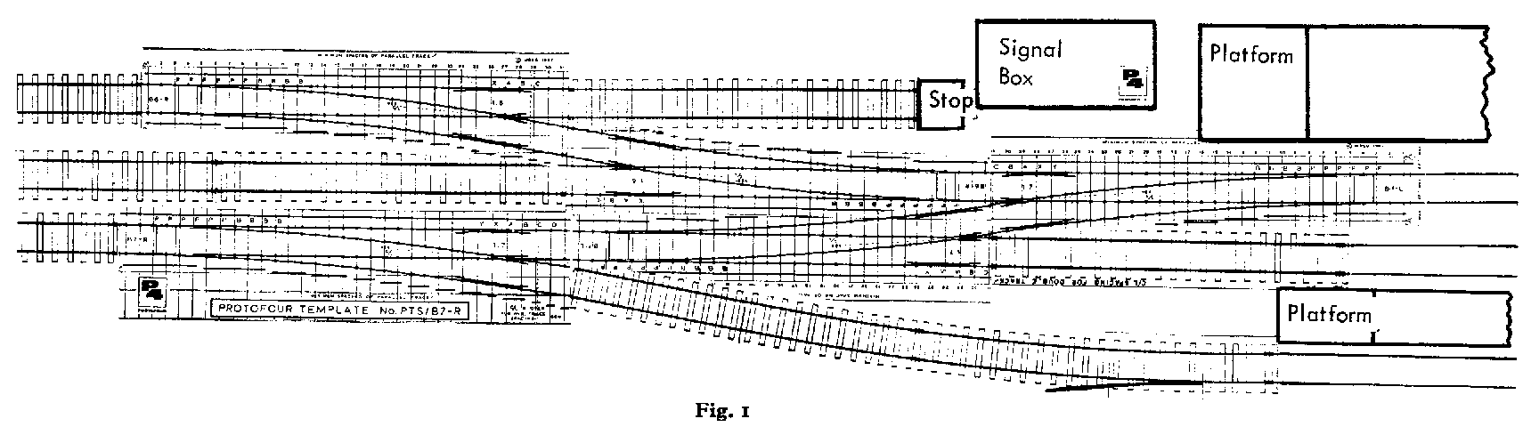Stage 1: Replan the layout—this is easiest done using Protofour planning templates at a scale of 1 mm.:1 ft. on a large sheet of stout paper. These templates are self-adhesive and easy to use. (Fig. 1.) |