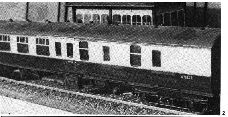 2 Wheels make a considerable difference to the appearance of a typical kit built coach, provided the wheels are of the correct proportions. | 3 Part of a Protofour test track, showing a turnout with scale crossing flangeways and model check rail spacing. Kings Cross rail and Brook Smith track system. The track assembly is to be modified in further production to offer correct scale appearance. |