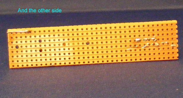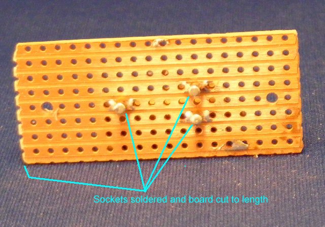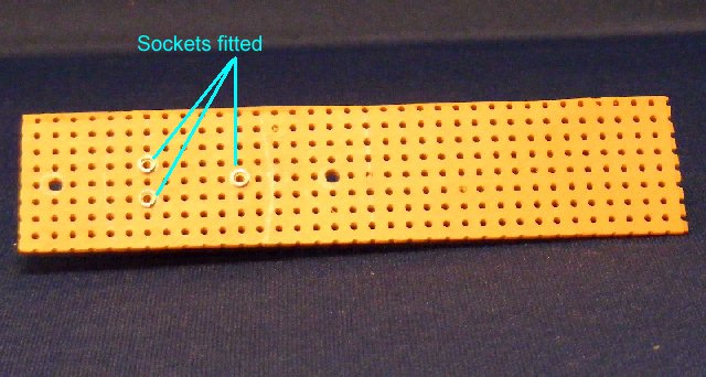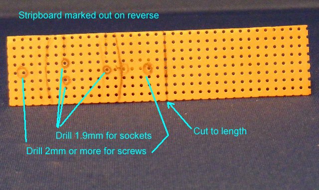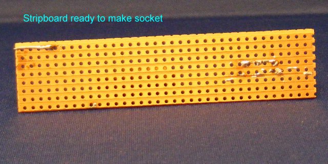 Under the board, the stripboard socket is sandwiched between the chipboard block and the baseboard.